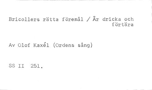 Bricollers rätta föremål / År dricka och //// förtära //// Av Olof Kaxel (Ordens sång) //// SS II 251.