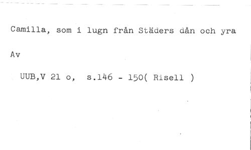 Camilla, som i lugn från Städers dån och yra Av //// UUB,V 21 o, s.146 - 150( Risell )