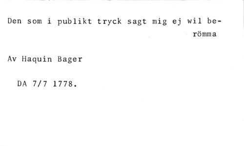 Den som i publikt tryck sagt mig ej wil be- //// römma //// Av Haquin Bager //// DA 7/7 1778.