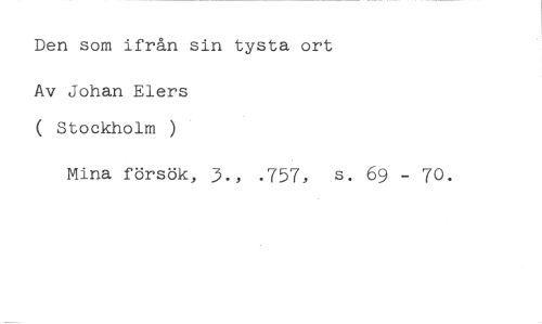Den som ifrån sin tysta ort //// Av Johan Elers ( Stockholm ) //// Mina försök, 3., .757, s. 69 - 70.