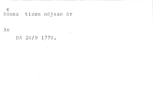e //// Dänna tiden nöjsam är //// Av //// DA 20/9 1770.