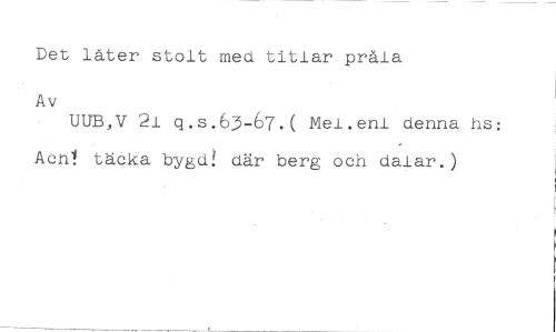 Det låter stolt med titlar pråla //// Av //// UUB,V 21 q.s.63-67.( Mei.eni denna hs: //// Achl tädka bygd! där berg och dalar.)