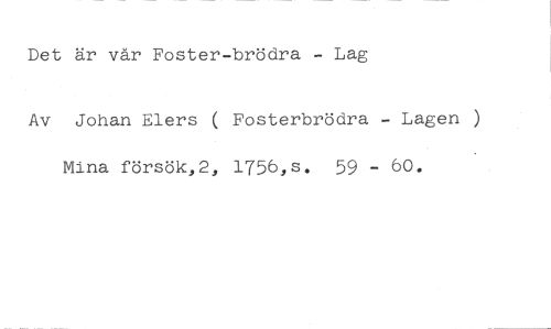 Det är vår Foster-brödra - Lag //// Av Johan Elers ( Fosterbrödra - Lagen ) Mina försök,2, 1756,s. 59 - 60.