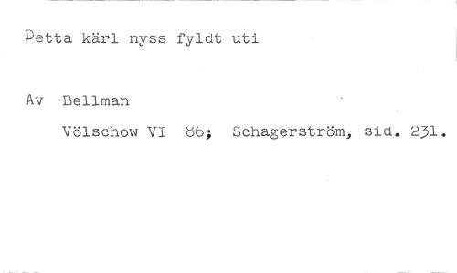 Detta kärl nyss fyldt uti //// Av Bellman //// Völschow VI 3b; Schagerström, sid. 231.