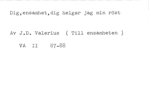 Dig,ensamhet,dig helgar jag min röst //// Av J.D. Valerius ( Till ensamheten ) VA II 87-88