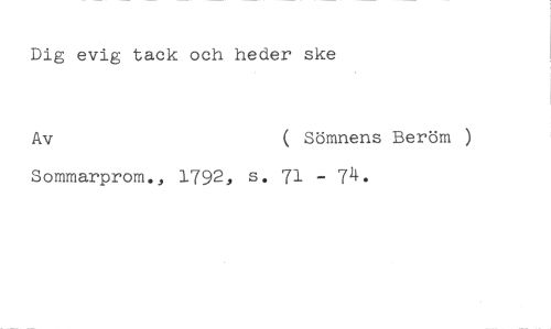 Dig evig tack och heder ske //// Av ( Sömnens Beröm ) //// Sommarprom., 1792, s. 71 - 74.