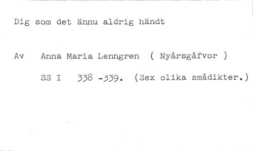 Dig som det ännu aldrig händt //// Av Anna Maria Lenngren ( Nyårsgåfvor ) //// SS 1 338 -j39. (Sex olika smådikter.)