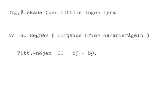 Dig,Älskade :den hittils ingen lyra //// Av G. Regnår ( Lofqväde öfver canariefågeln ) //// Vitt.-nöjen II b5 - 89.