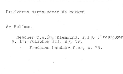 Drufvorna digna neder åt marken Av Bellman //// Nescher C,s.69; Klemmind, s.130 ;Trem.tig s. 17; Völschow III, 29; tr. //// Fredmans handskrifter, s. 75.