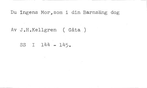 Du ingens Mor,som i din Barnsäng dog //// Av J.H.Kellgren ( Gåta ) SS 1 144 - 145.
