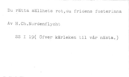 Du rätta sällhets rot,du fridens fosterinna Av H.Ch.Nordenflycht //// SS I 19( öfver kärleken til vår nästa.)