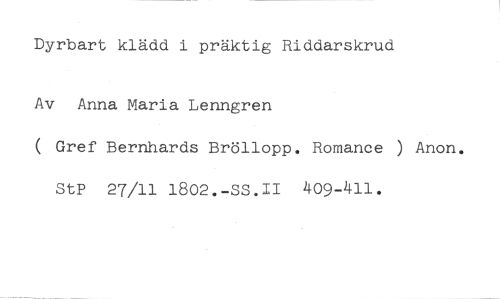 Dyrbart klädd i präktig Riddarskrud //// Av Anna Maria Lenngren //// ( Gref Bernhards Bröllopp. Romance ) Anon. StP 27/11 1802.-SS.II 409-411.
