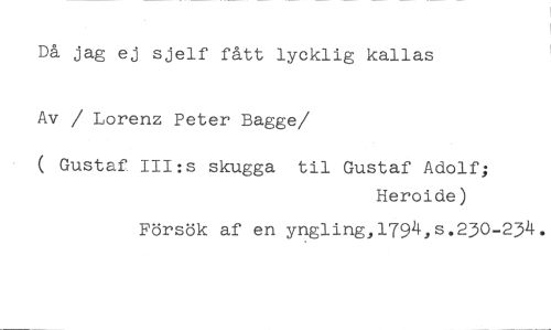Då jag ej sjelf fått lycklig kallas Av / Lorenz Peter Bagge //// /( Gustaf. III:s skugga til Gustaf Adolf; //// Heroide) //// Försök af en yngling,1794,s.230-234.
