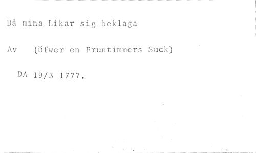 Då mina Likar sig beklaga //// Av (Öfwer en Fruntimmers Suck) //// DA 19/3 1777.