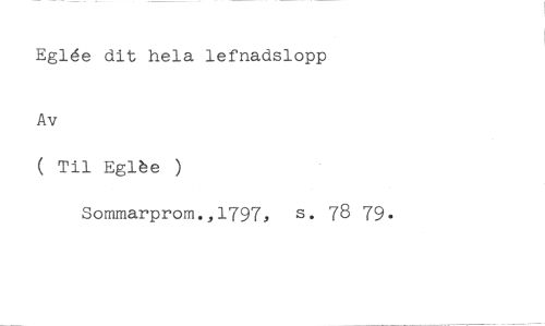 Eg]Ae dit hela lefnadslopp //// Av //// ( Til Eglhe ) //// Sommarprom.,1797, s. 78 79.