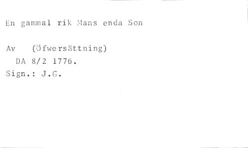 En gammal rik Mans enda Son //// Av (Öfwersättning) //// DA 8/2 1776. Sign.: J.C.