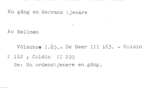 En gång en Herrans 'Jjenare //// Av Bellman //// Völschow 1.83.- De Geer III 163. - Coldin //// I 112 ; Coldin II 295 //// Se: En ordenstjenere en gång.