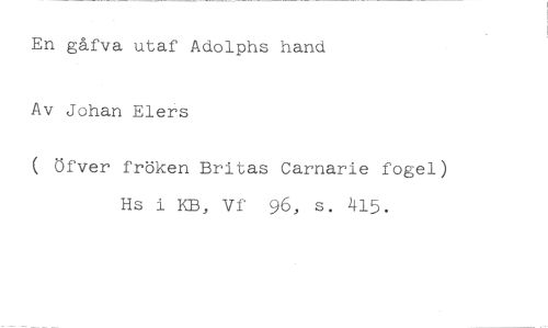 En gåfva utaf Adolphs hand Av Johan Elers //// ( Öfver fröken Britas Carnarie fogel) Hs i KB, Vf 96, s. 415.