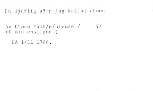 En ljuflig sömn jag kallar döden //// Av D'une Malh/e/ureuse / ? //// /(I min enslighet) //// DA 1/11 1786.