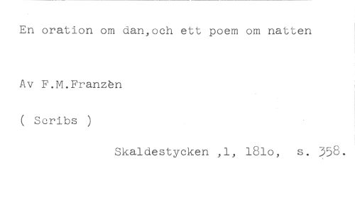 En oration om dan,och ett poem om natten //// Av F.M.Franzån //// ( Scribs ) //// Skaldestycken ,1, 181o, s. 358.
