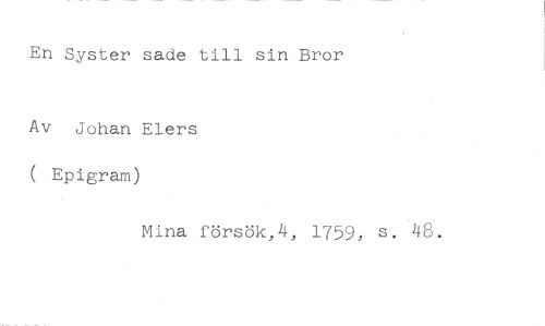 En Syster sade till sin Bror //// Av Johan Elers ( Epigram) //// Mina försök,4, 1759, s. 48.