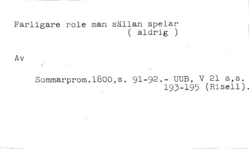 Farligare role man sällan spelar //// ( aldrig ) //// Av //// Sommarprom.1800,s. 91-92.- UUB, V 21 s,s. //// 193-195 (Risell).