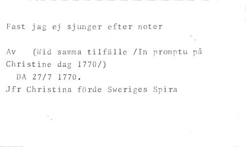 Fast jag ej sjunger efter noter //// Av (Wid samma tilfälle /In promptu på //// Christine dag 1770/) DA 27/7 1770. //// Jfr Christina förde Sweriges Spira