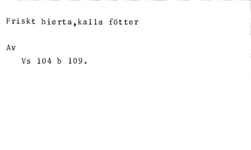Friskt hierta,kalla fötter //// Av //// Vs 104 b 109.