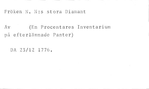 Fröken N. N:s stora Diamant //// Av (En Procentares Inventarium //// på efterlämnade Panter) //// DA 23/12 1776.