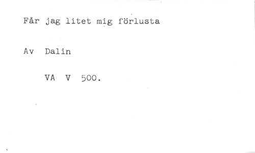 Får jag litet mig förlusta //// Av Dalin //// VA V 500.