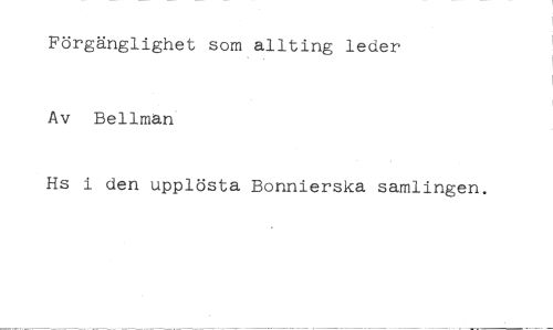 Förgänglighet som allting leder //// Av Bellman //// Hs i den upplösta Bonnierska samlingen.