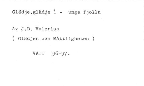 Glädje,glädje . - unga fjolla //// Av J.D. Valerius //// ( Glädjen och Måttligheten ) //// VAII 96-97.