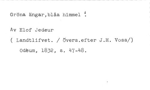 Gröna ängar,blåa himmel t //// Av Elof Jedeur //// ( Landtlifvet. / övers.efter J.H. Voss/) Odum, 1832, s. 47-48.