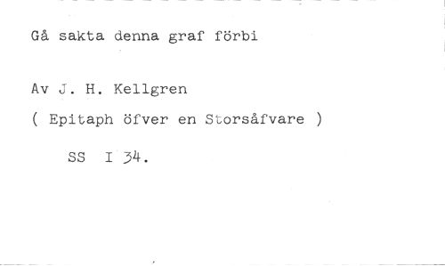 Gå sakta denna graf förbi //// Av J. H. Kellgren //// ( Epitaph öfver en Storsåfvare ) //// SS 1 4.