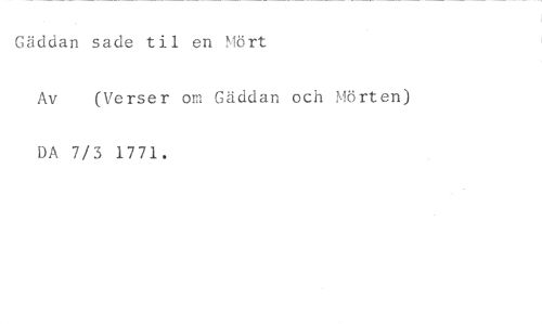 Gäddan sade til en Mört //// Av (Verser om Gäddan och Mörten) //// DA 7/3 1771.