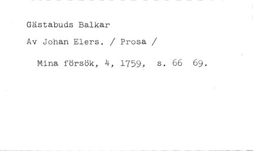 Gästabuds Balkar //// Av Johan Elers. / Prosa //// /Mina försök, 4, 1759, s. 66 69.