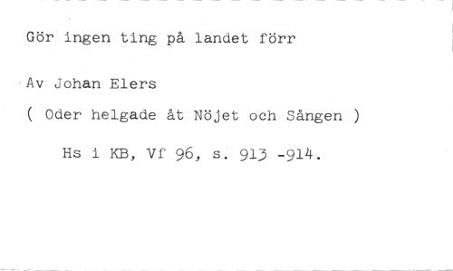 Gör ingen ting på landet förr //// Av Johan Elers //// ( Oder helgade åt Nöjet och Sången ) //// Hs i KB, Vf 96, s. 913 -914.