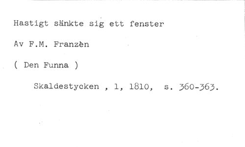 Hastigt sänkte sig ett fenster //// Av F.M. Franzén //// ( Den Funna ) //// Skaldestycken , 1, 1810, s. 360-363.
