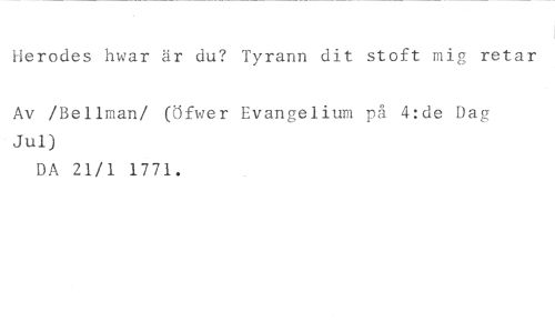 Herodes hwar är du? Tyrann dit stoft mig retar //// Av /Bellman/ (öfwer Evangelium på 4:de Dag Jul) //// DA 21/1 1771.