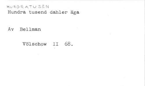 I-1 uNDR p\-ru SEN //// Hundra tusend dahler äga //// Av Bellman //// Völschow II 68.