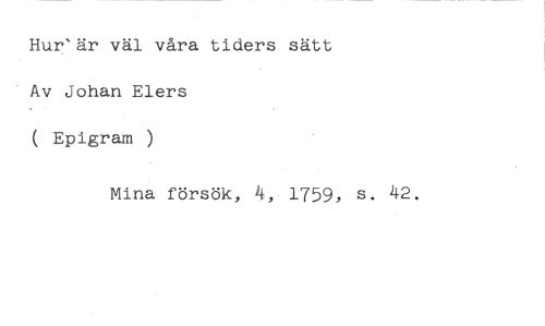 Hur'är väl våra tiders sätt Av Johan Elers ( Epigram ) //// Mina försök, 4, 1759, s. 42.