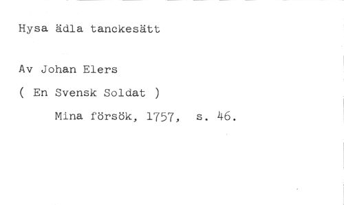 Hysa ädla tanckesätt //// Av Johan Elers //// ( En Svensk Soldat ) //// Mina försök, 1757, s. 46.