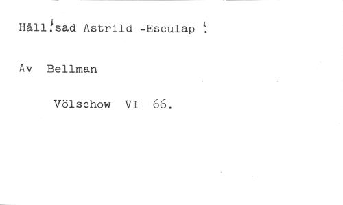 Håll!sad Astrild -Esculap //// Av Bellman //// Völschow VI 66.