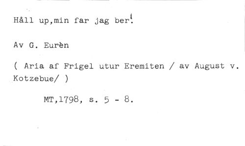 Håll up,min far jag bert. Av G. Eurn //// ( Aria af Frigel utur Eremiten / av August v. Kotzebue/ ) //// MT,1798, s. 5 - 8.