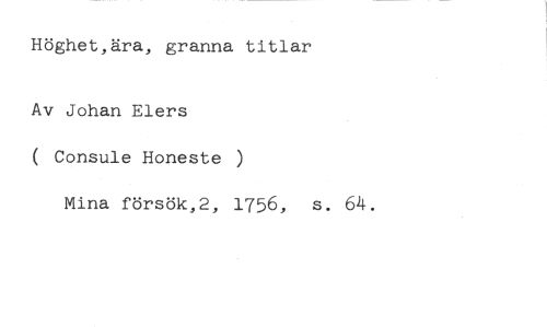 Höghet,ära, granna titlar //// Av Johan Elers //// ( Consule Honeste //// Mina försök,2, 1756, s. 64.