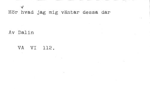 Hör hvad jag mig väntar dessa dar //// Av Dalin //// VA VI 112.