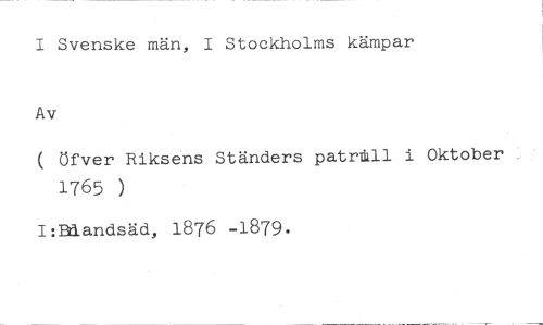 I Svenske män, I Stockholms kämpar //// Av //// ( öfver Riksens Ständers patrtll i Oktober 1765 ) //// I:Edandsäd, 1876 -1879.