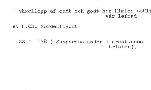 I växellopp af ondt och godt har Himlen stält //// vår lefnad //// Av H.Ch. Nordenflycht //// SS I 178 ( Skaparens under i creaturens //// brister).