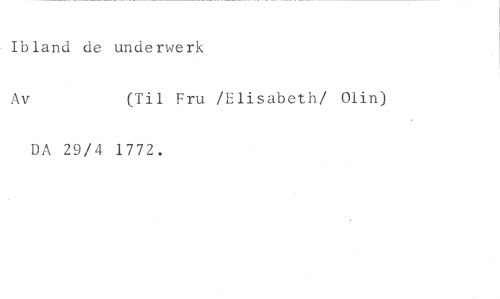 Ibland de underwerk //// Av (Til Fru /Elisabeth/ Olin) //// DA 29/4 1772.