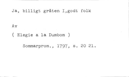 Ja, billigt gråten I,godt folk //// Av //// ( Elegie a la Dumbom ) //// Sommarprom., 1797, s. 20 21.